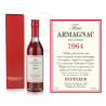 Cet Armagnac Dupeyron millésime 1964 à la robe soutenue aux nuances acajou se montrera harmonieux en bouche. Ses arômes d'amandes tastées se dévoileront magnifiquement dans un verre ballon chauffé au creux de la main. Il s'agit d'une eau de vie ronde à déguster en digestif. Les Armagnacs Dupeyron sont élevés, depuis 5 générations, dans les chais de Condom, dans la plus grande tradition. Des senteurs de pruneaux, de vanille se dégagent de ces elixirs. Ils sont la haute couture des Spiritueux. Ils représentent la quintessence en matière deau de vie. A consommer en digestif, accompagné d'un cigare. Un joyeux de pureté, une eau de vie fine, très parfumée, immensément élégante tout en étant d'une puissance hors du commun.