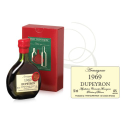 Les Armagnacs Dupeyron sont élevés, depuis 5 générations, dans les chais de Condom, dans la plus grande tradition. Des senteurs de pruneaux, de vanille se dégagent de ces elixirs. Ils sont la haute couture des Spiritueux. Ils représentent la quintessence en matière deau de vie. A consommer en digestif, accompagné d'un cigare.